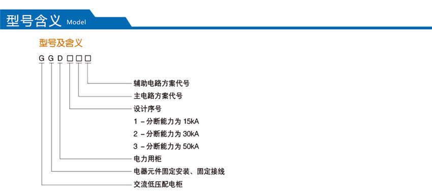 GGD型交流低压配电柜是根据能源部主管上级,广大电力用户及设计部门的要求,本着安全、经济、合理、可靠的原则设计的新型配电柜。产品具有分断能力高,动热稳定性好,电气方案灵活、组合方便,系列性、实用性强,结构新颖、防护等级高等特点,可以作低压成套开关设备的更新换代产品使用。并且广泛适用于发电厂、变电所、工业企业等电力用户作为交流50HZ,额定工作电压380V,额定电流至3150A 的配电系统中作为动力,照明及配电设备的电能转换、分配与控制之用。该产品分断能力高,额定短结构新颖等特点。该产品是我组装式、固定面板开关柜的代表产品之一。