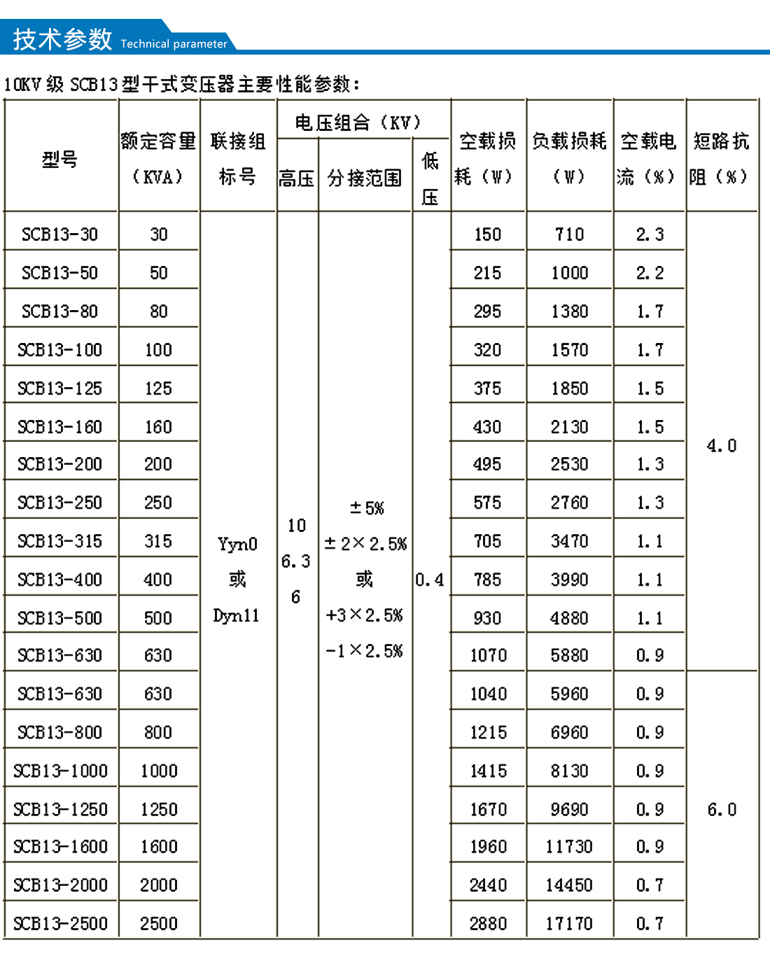 【额定容量】:30-2500kva 【额定电压】:10kv 【联结组别编号】:Dyn11,Yyno