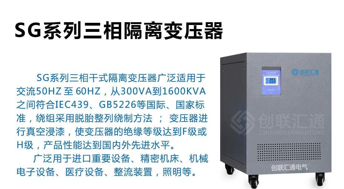 广泛用于进口重要设备、机密机床、机械电子设备、医疗设备、整流装置、照明等,安装场所应无严重影响变压器绝缘强度的气体,蒸汽,化学性沉积,污垢,导电尘埃及无其他易爆易燃易腐蚀的物质。