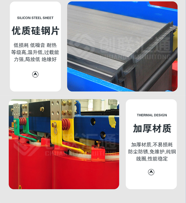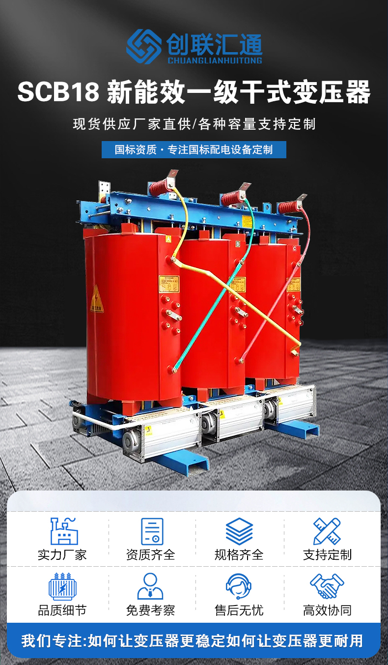 SCB18变压器满足一级能效,相较于传统的SCB12干式变压器,空载损耗降低30%,负载损耗降低10%左右,因此SCB18型变压器最大的优势便是节能。