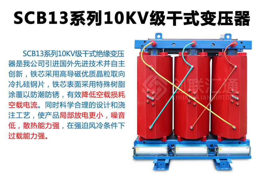 SCB13树脂绝缘干式变压器是我公司引进外先进技术自主研发的,铁芯采用高导磁优质晶粒取向冷扎硅钢片,45°全斜步进接缝,铁芯采用特殊的方管拉板结构,芯柱采用绝缘带绑扎,铁芯表面采用特殊树脂涂覆以防潮防锈,有效降低了空载损耗、空载电流和铁芯噪音。同时科学合理的设计和浇注工艺,使产品局部放电更小,噪音低,散热能力强,在强迫风冷条件下额定负载下长期运行。
