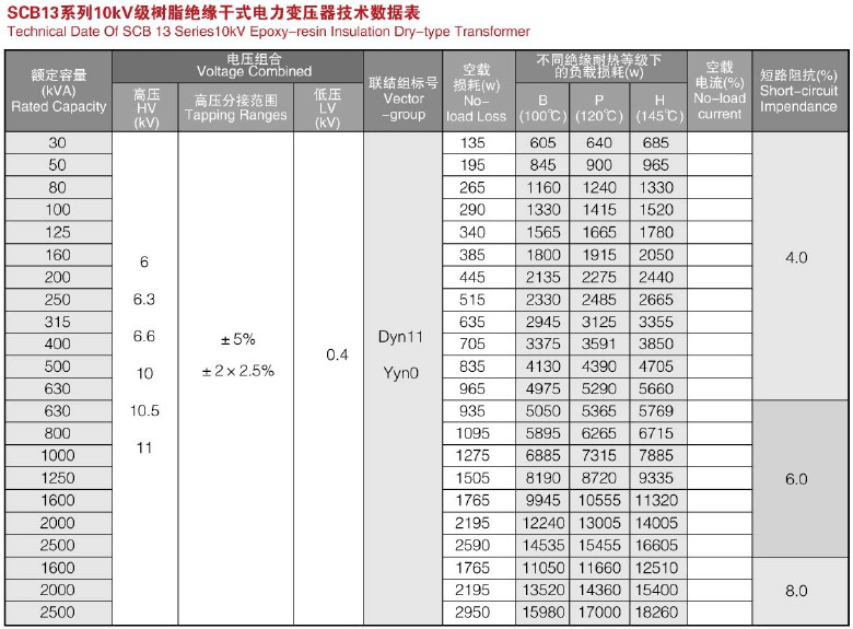 SCB10、SCB11、SCB13系列树脂绝缘干式电力变压器布局特性