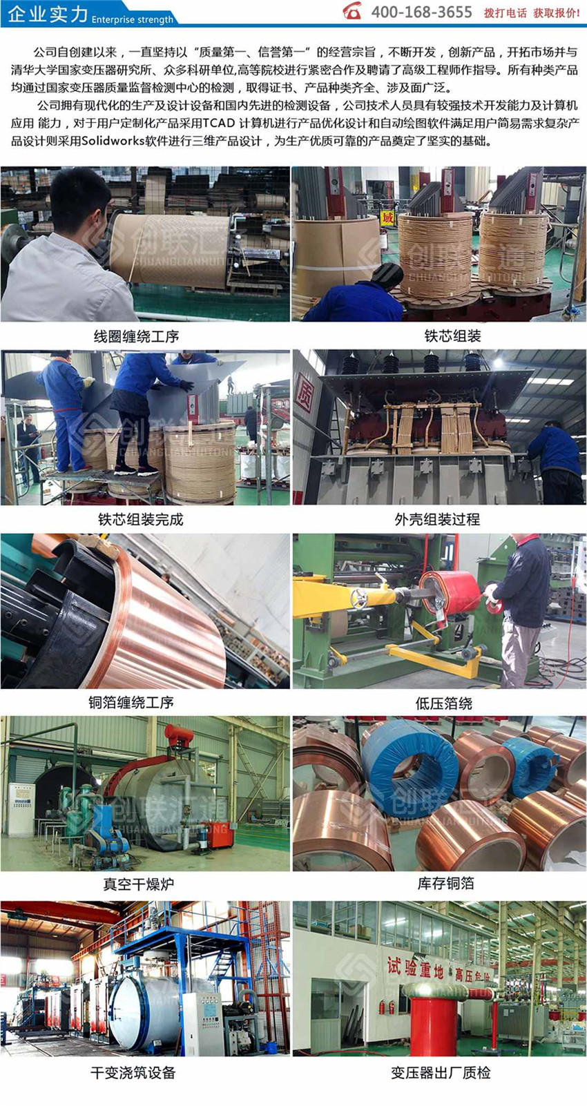 3.绕组采用优质无氧铜导线,导电性能好,负载损耗低。绕组设计为先进的纵向油道结构,散热效果好,电气绝缘强度高,有很好的冲击特性。