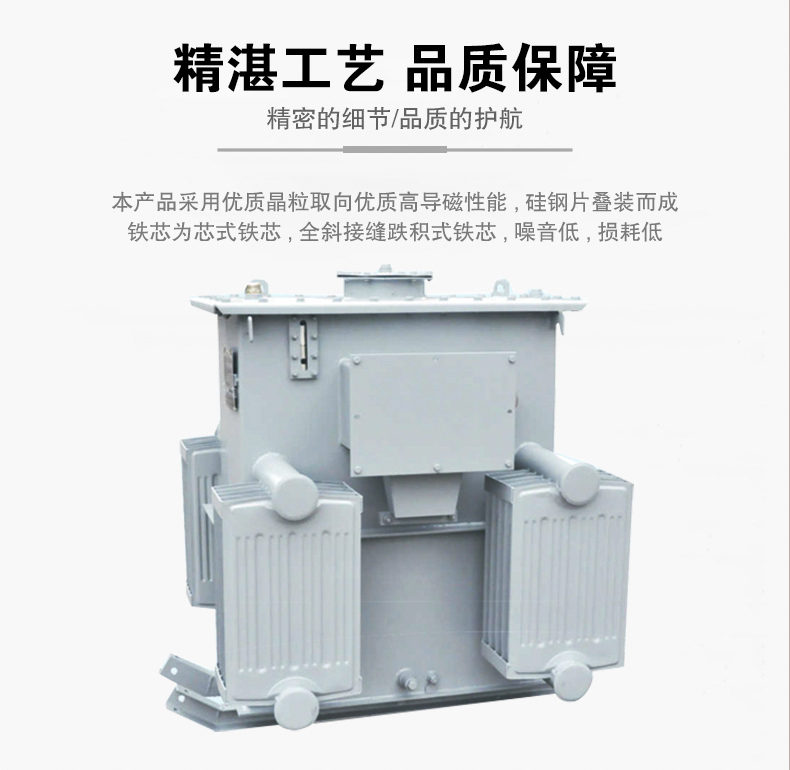 型接成693V或”D”型接成400V供电,在电缆接线盒内直接装次级端头引出六个瓷套供用户改接变压器吊装利用焊在箱壁的吊攀,变压器箱底均装有拖撬,在拖撬上备有安装孔,可供矿并需要时加装矿车滚轮。