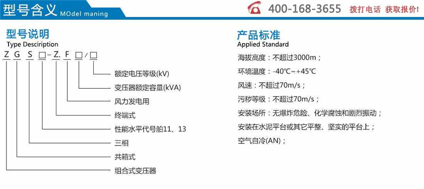 GS11-Z.F系列风力发电用组合式变压器适用于35k V终端供电系统,作为变电、配电、计量、控制和?;ぷ?置。