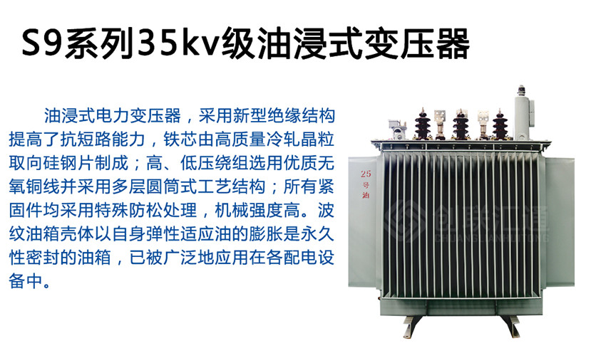 我公司生产的油浸式配电变压器,器身采用了新型绝缘结构,提高了抗短路能力;铁芯由高质量冷轧硅钢片制成;高压绕组均选用优质无氧铜线为材料,并采用多层圆筒式结构;所有坚固件均采用特殊防松处理。